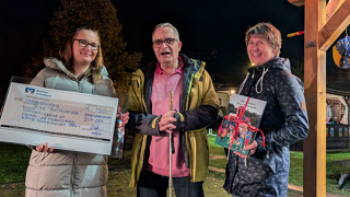 Entsprechend unserer Tradition, im Rahmen unserer jährlichen Stammtische zwei Projekte bzw. Vereine in den besuchten Ortsteilen finanziell zu unterstützen, übergab Vorstandsmitglied Georg Hanke am Ende des Laternenumzugs am 11.11.2025 der AWO Kita „Am Kirchplatz" am Martinstag der Einrichtungsleiterin Frau Schüler und ihrer Kollegin Frau Schäfer im Beisein von Kindern und Eltern einen Spendenscheck für die Kindertagesstätte auf dem Hof des Dahmelandmuseums. Alle haben sich sehr darüber gefreut."