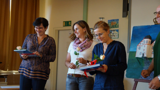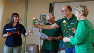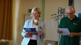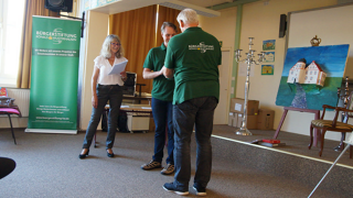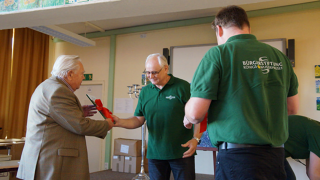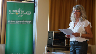 Für die Lehrer:innen ist weiterhin zahlreiches didaktisches Material für den Unterricht erarbeitet worden. In einer kleinen Ansprache wurde dem Einsatz zahlreicher Lehrer:innen, den Mitarbeitern aus dem Dahmeland-Museum, der Unterstützung durch die Stadtchronisten, dem Hobby-Fotographen aus der Bürgerstiftung, Herrn Steffen Reddig, den mitwirkenden Schülern:innen aber auch vor allem dem unermüdlichen Engagement der Projektleiterin Frau Kliem gedankt. Und nicht zuletzt wurde der Familie Kalz gedankt, denn die ursprüngliche Projektidee aus der Gründungszeit der Bürgerstiftung wurde durch Karsten Kalz angestoßen und eine großzügige Spende von Horst Kalz ermöglichte die Fertigstellung von 2.000 Sachkundebüchern.