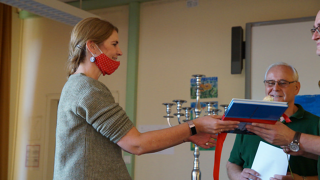 Am 30.09.2020 um 16:00 Uhr wurden in der Aula der Wilhelm Busch Grundschule durch den Vorstand der Bürgerstiftung Königs Wusterhausen gemeinsam mit der Projektleiterin Frau Cornelia Kliem (ehemalige Schulleiterin Grundschule Niederlehme) in einem kleinen feierlichen Rahmen die neuen Sachkundebücher "Mein Heimartort" an insgesamt sieber KW'er Grundschulleiter:innen, Fachkonferenzleiterinnen Sachkunde und Frau Zschenderlein als Mitarbeiterin der Stadtverwaltung für die Kitas übergeben.