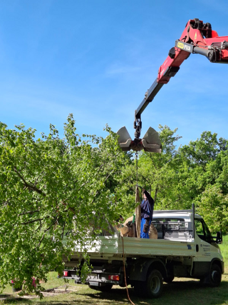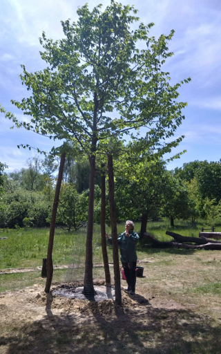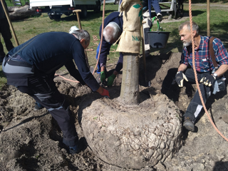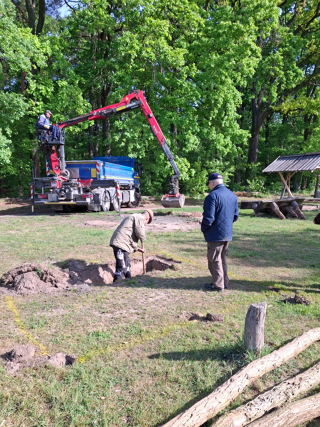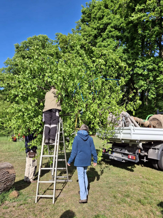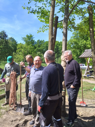 Mit vereinten Kräften wurde ein ca. 6m hoher Buchenhain auf die Streuobstwiese gepflanzt. Ein weiterer "Baustein" für das Projekt "Tiergarten 300".